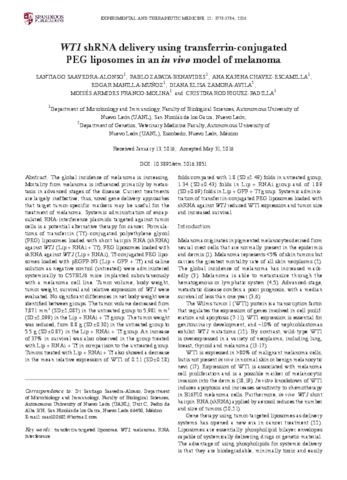 | Palabras claves no controlados: | Transferrin‑targeted liposome; WT1; Melanoma; RNA interference. | ||||||||||||||||||||||||