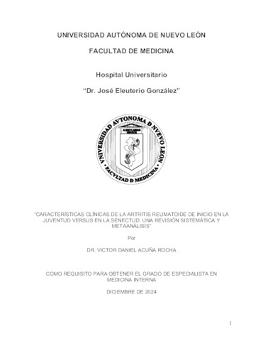Acuña Rocha, Victor Daniel (2024) Características clínicas de la artritis reumatoide de inicio en la juventud versus en la senectud: una revisión sistemática y metaanálisis. Especialidad thesis, Universidad Autónoma de Nuevo León.