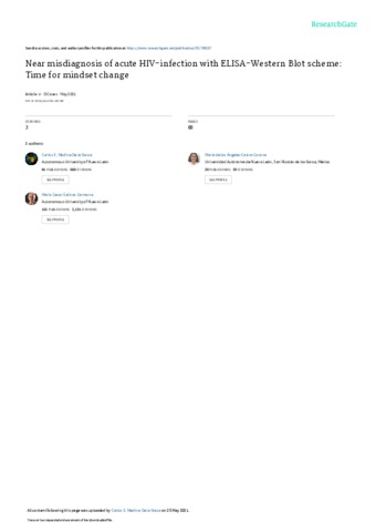 Medina de la Garza, Carlos Eduardo y Castro Corona, María de los Ángeles y Salinas Carmona, Mario César (2021) Near misdiagnosis of acute HIV-infection with ELISA-Western Blot scheme: Time for mindset change. IDCases, 25. pp. 1-3. ISSN 22142509