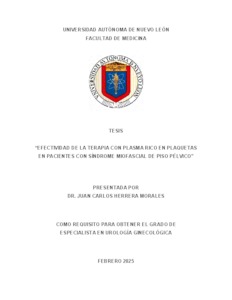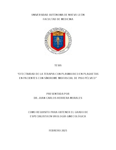 Herrera Morales, Juan Carlos (2025) Efectividad de la terapia con plasma rico en plaquetas en pacientes con síndrome miofascial de piso pélvico. Especialidad thesis, Universidad Autónoma de Nuevo León.