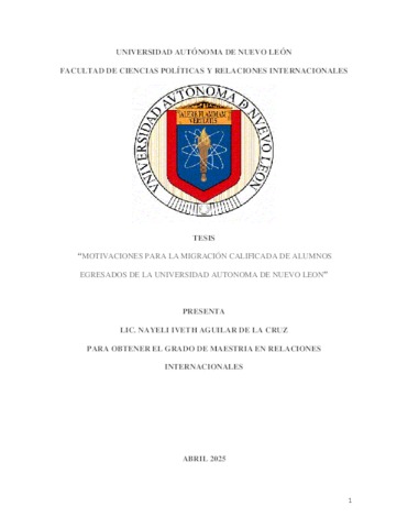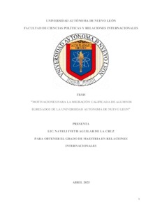 Aguilar de la Cruz, Nayeli Iveth (2025) Motivaciones para la migración calificada de alumnos egresados de la Universidad Autónoma de Nuevo León. Maestría thesis, Universidad Autónoma de Nuevo León.