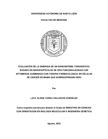 Gallegos González, Elena Yareli (2025) Evaluación de la sinergia de un nanosistema teranóstico basado en nanopartículas de oro funcionalizadas con aptámeros combinado con terapia farmacológica en células de cáncer de mama que sobreexpresan HER2. Maestría thesis, Universidad Autónoma de Nuevo León.