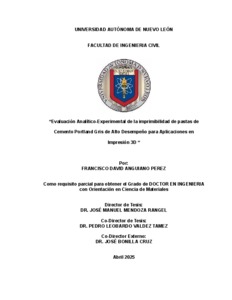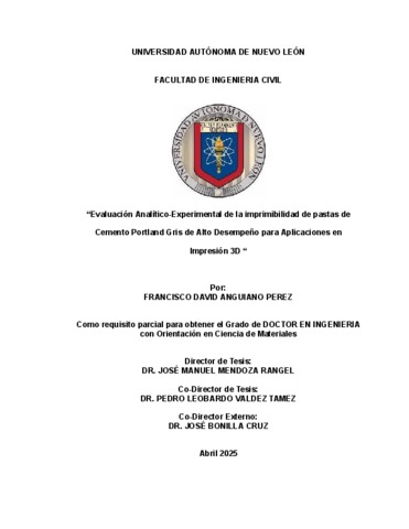 Anguiano Pérez, Francisco David (2025) Evaluación analítico-experimental de la printabilidad de pastas de cemento Portland con potencial de aplicación en impresión 3D. Doctorado thesis, Universidad Autónoma de Nuevo León.