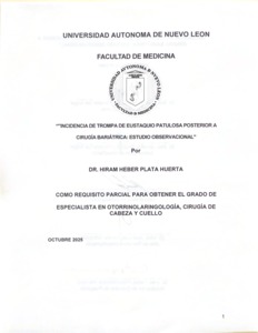 Plata Huerta, Hiram Herber (2025) Incidencia de trompa de Eustaquio patulosa posterior a cirugía bariátrica: estudio observacional. Especialidad thesis, Universidad Autónoma de Nuevo León.