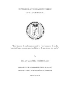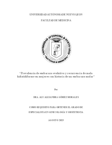 Gómez Morales, Aly Alejandra (2025) Prevalencia de embarazo evolutivo y recurrencia de mola hidatidiforme en mujeres con historia de un embarazo molar. Especialidad thesis, Universidad Autónoma de Nuevo León.