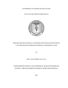 Garza Vega, Lourdes Michelle (2025) Exploración del potencial citotóxico de extractos botánicos y su potenciación mediante sistemas nanoparticulados. Maestría thesis, Universidad Autónoma de Nuevo León.