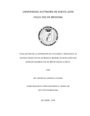 Villanueva Lozano, Hiram (2025) Evaluación de la expresión de citocinas y respuesta al estrés oxidativo en un modelo murino de infección por hongos zigomicetos de importancia clínica. Doctorado thesis, Universidad Autónoma de Nuevo León.