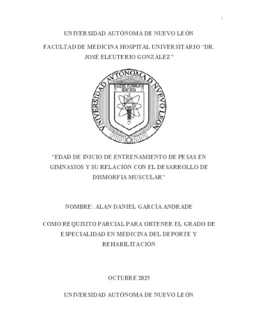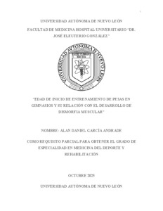 García Andrade, Alan Daniel (2025) Edad de inicio de entrenamiento de pesas en gimnasios y su relación con el desarrollo de dismorfia muscular. Especialidad thesis, Universidad Autónoma de Nuevo León.