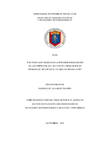 De La Garza Treviño, Rodrigo (2025) Factores que inciden en la internacionalización de las empresas del sector de fabricación de prendas de vestir en el estado de Nuevo León. Doctorado thesis, Universidad Autónoma de Nuevo León.