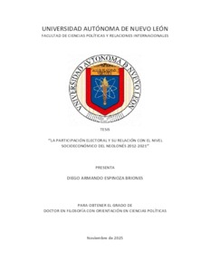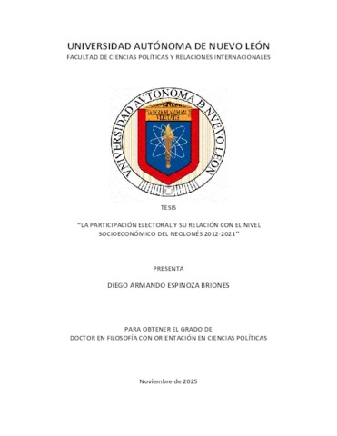 Espinoza Briones, Diego Armando (2025) La participación electoral y su relación con el nivel socioeconómico del neolonés 2012-2021. Doctorado thesis, Universidad Autónoma de Nuevo León.