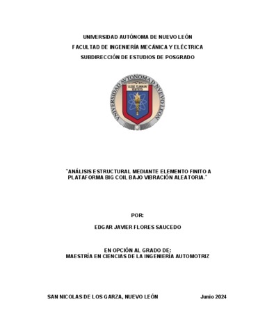 Flores Saucedo, Edgar Javier (2025) Análisis estructural mediante elemento finito a plataforma Big Coil bajo vibración aleatoria. Maestría thesis, Universidad Autónoma de Nuevo León.