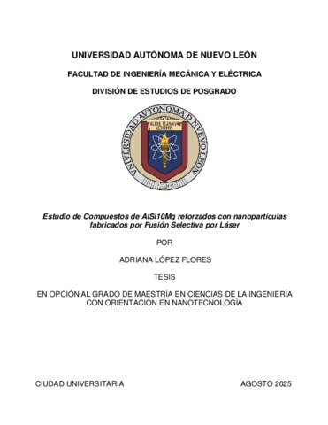 López Flores, Adriana (2025) Estudio de Compuestos de AlSi10Mg reforzados con nanopartículas fabricados por Fusión Selectiva por Láser. Maestría thesis, Universidad Autónoma de Nuevo León.
