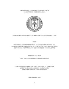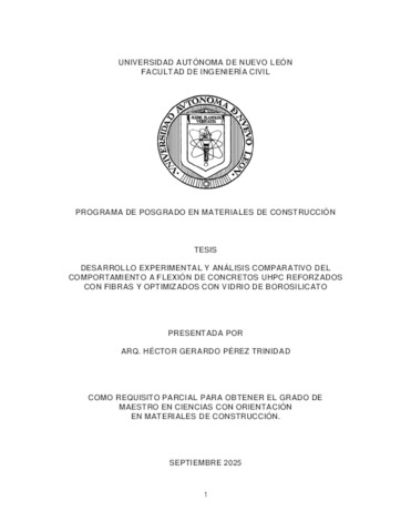 Pérez Trinidad, Héctor Gerardo (2025) Desarrollo experimental y análisis comparativo del comportamiento a flexión de concretos UHPC reforzados con fibras y optimizados con vidrio de borosilicato. Maestría thesis, Universidad Autónoma de Nuevo León.