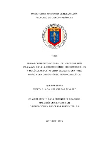 Vargas Álvarez, Evelyn Guadalupe (2025) Aprovechamiento integral del olote de maíz (Zea mays) para la producción de biocombustibles y moléculas plataforma mediante una ruta híbrida de conversión bio-termocatalítica. Maestría thesis, Universidad Autónoma de Nuevo León.