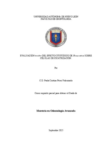 Pérez Valenzuela, Paola Cristina (2025) Evaluación in vitro del efecto citotóxico de Ficus carica sobre células de cicatrización. Maestría thesis, Universidad Autónoma de Nuevo León.
