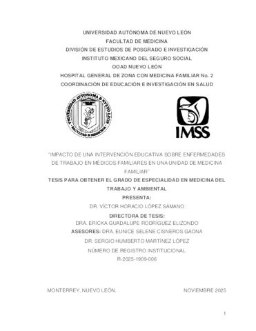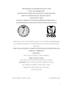 López Sámano, Víctor Horacio (2025) Impacto de una intervención educativa sobre enfermedades de trabajo en médicos familiares en una unidad de medicina familiar. Especialidad thesis, Universidad Autónoma de Nuevo León.