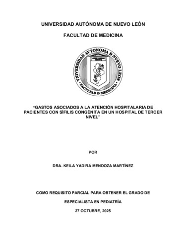 Mendoza Martínez, Keila Yadira (2025) Gastos asociados a la atención hospitalaria de pacientes con sífilis congénita en un hospital de tercer nivel. Especialidad thesis, Universidad Autónoma de Nuevo León.