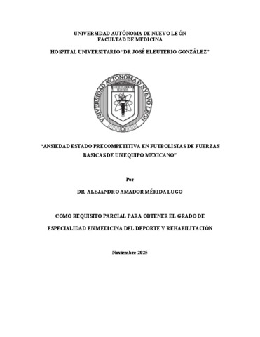 Alejandro Amador, Mérida Lugo (2025) Ansiedad estado precompetitiva en futbolistas de fuerzas básicas de un equipo mexicano. Especialidad thesis, Universidad Autónoma de Nuevo León.