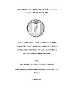 Pinales Palomino, Anet Alejandra (2024) Características clínicas y desenlaces de pacientes pediátricos con pards severo en ventilación mecánica invasiva sometidos a decúbito prono prolongado. Especialidad thesis, Universidad Autónoma de Nuevo León.