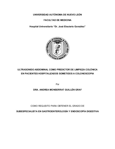 Guillén Graf, Andrea Monserrat (2025) Ultrasonido abdominal como predictor de limpieza colónica en pacientes hospitalizados sometidos a colonoscopía. Especialidad thesis, Universidad Autónoma de Nuevo León.