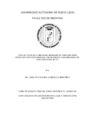 “Uso de escalas clínicas no invasivas de fibrosis para predecir etiología variceal en pacientes con sangrado de tubo digestivo alto".