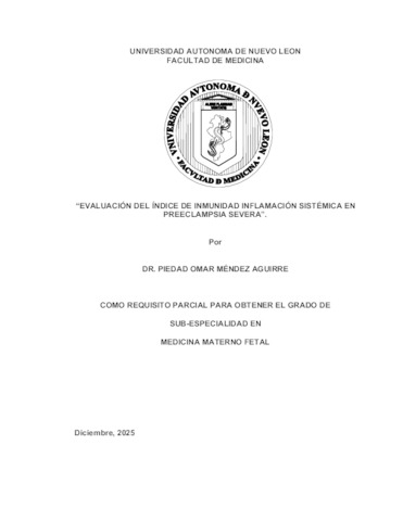 Méndez aguirre, Piedad Omar (2025) Evaluación del índice de inmunidad inflamación sistémica en preclampsia severa. Especialidad thesis, Universidad Autónoma de Nuevo León.