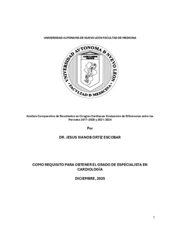 Ortiz Escobar, Jesus Ivanob (2025) Análisis comparativo de resultados en cirugías cardíacas: evaluación de diferencias entre los períodos 2017–2020 y 2021–2024. Especialidad thesis, Universidad Antónoma de Nuevo León.