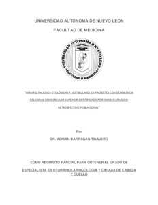 Barragan Tinajero, Adrian (2025) Manifestaciones ontológicas y vestibulares en pacientes con dehiscencia del canal semicircular superior identificada por imagen análisis retrospectivo poblacional. Especialidad thesis, Universidad Autónoma de Nuevo León.