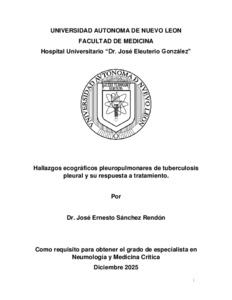 Sánchez Rendón, José Ernesto (2025) Hallazgos ecográficos pleuropulmonares de tuberculosis pleural y su respuesta a tratamiento. Especialidad thesis, Universidad Autónoma de Nuevo León.