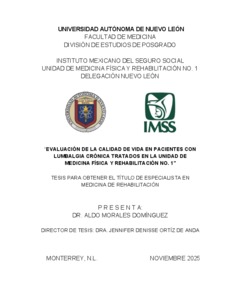 Morales Domínguez, Aldo (2025) Evaluación de la calidad de vida en pacientes con lumbalgia crónica tratados en la unidad de medicina física y rehabilitación NO. 1. Especialidad thesis, Universidad Autónoma de Nuevo León.