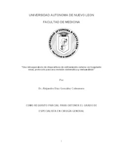 Díaz González Colmenero, Alejandro (2025) Uso intraoperatorio de dispositivos de enfriamiento externo en trasplante renal, protocolo para una revisión sistemática y metaanálisis. Especialidad thesis, Universidad Autónoma de Nuevo León.