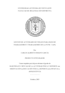 Urbano García, Carlos Alberto (2025) Gestión de actividades de verano para hijos de trabajadores y trabajadores de la FCFM – UANL. Maestría thesis, Universidad Autónoma de Nuevo León.