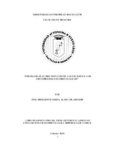 Alarcón Jarquín, Margarita Isabel (2025) Prevalecencia de maltrato entre los pacientes con enfermedades reumatológicas. Especialidad thesis, Universidad Autonoma de Nuevo Leon.