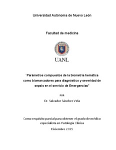 Sanchez Vela, Salvador (2025) Parámetros compuestos de la biometría hemática como biomarcadores para diagnóstico y severidad de sepsis en el servicio de Emergencias. Especialidad thesis, Universidad Autonoma de Nuevo Leon.