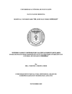 Medina Mier, Verónica (2025) Estudio casos y controles de calcificaciones vasculares intracraneales por tomografía en ictus isquémico pareado con control sin infarto cerebral. Especialidad thesis, Universidad Autónoma de Nuevo León.
