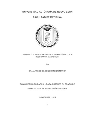 Elizondo Montemayor, Alfredo (2025) Contactos vasculares con el nervio óptico por resonancia magnética. Especialidad thesis, Universidad Autónoma de Nuevo León.