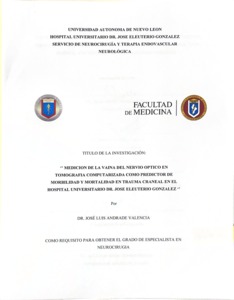 Andrade Valencia, José Luis (2025) Medición de la vaina del nervio óptico en tomografía computarizada como predictor de morbilidad y mortalidad en trauma craneal en el hospital universitario. Especialidad thesis, Universidad Autónoma de Nuevo León.
