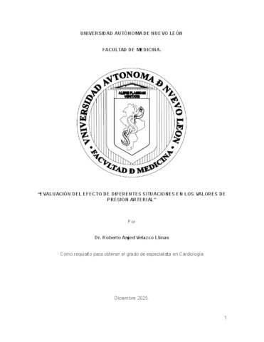 Velazco Llinas, Roberto Anjed (2025) Evaluación del efecto de diferentes situaciones en los valores de presión arterial. Especialidad thesis, Universidad Autónoma de Nuevo León.