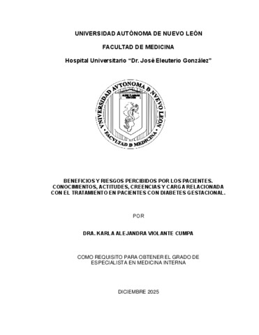 Violante Cumpa, Karla Alejandra (2025) Beneficios y riesgos percibidos por los pacientes. conocimientos, actitudes, creencias y carga relacionada con el tratamiento en pacientes con diabetes gestacional. Especialidad thesis, Universidad Autónoma de Nuevo León.