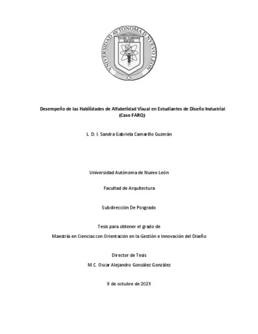 Camarillo Guzmán, Sandra Gabriela (2023) Desempeño de las habilidades de alfabetidad visual en estudiantes de diseño industrial (Caso FARQ). Maestría thesis, Universidad Autónoma de Nuevo León.