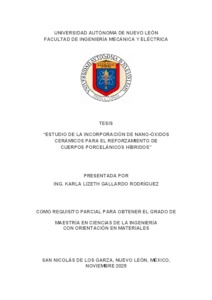 Gallardo Rodríguez, Karla Lizeth (2025) Estudio de la incorporación de nano-óxidos cerámicos para el reforzamiento de cuerpos porcelánicos híbridos. Maestría thesis, Universidad Autónoma de Nuevo León.