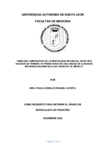 Rangel Acosta, Paola Giselle (2025) Análisis comparativo de la mortalidad neonatal en recién nacidos de término vs prematuros en una unidad de cuidados intensivos neonatales del noreste de México. Especialidad thesis, Universidad Autónoma de Nuevo León.