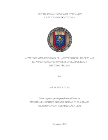 Loya Silva, Alexa (2025) Actividad antimicrobiana del aceite esencial de orégano en pacientes con gingivitis inducida por placa dentobacteriana. Maestría thesis, Universidad Autónoma de Nuevo León.