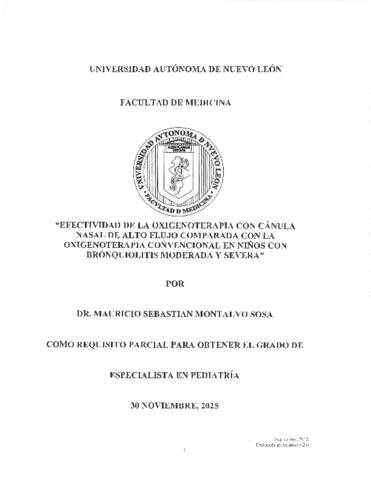 Montalvo Sosa, Mauricio Sebastián (2026) Efectividad de la oxigenoterapia con cánula nasal de al to flujo comparada con la oxigenoterapia convencional en niños con brionquiolitis moderada y severa. Especialidad thesis, Universidad Autónoma de Nuevo León.