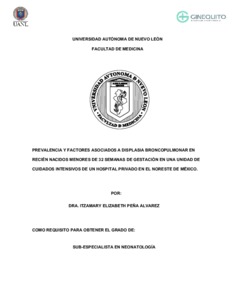 Peña Álvarez, Itzamary Elizabeth (2026) Prevalencia y factores asociados a displasia broncopulmonar en recién nacidos menores de 32 semanas de gestación en una unidad de cuidados intensivos de un hospital privado en el noreste de México. Especialidad thesis, Universidad Autónoma de Nuevo León.