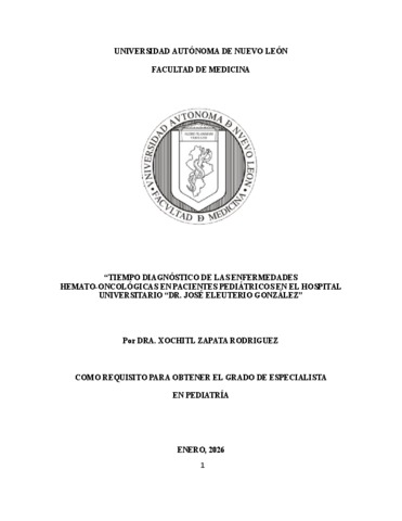 Zapata Rodríguez, Xóchitl (2026) Tiempo diagnóstico de las enfermedades hemato-oncológicas en pacintes pediátricos en el hospital universitario Dr. José Eleuterio González. Especialidad thesis, Universidad Autónoma de Nuevo León.